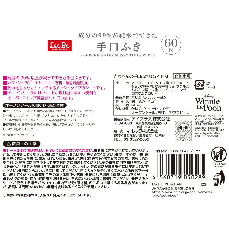 - レックのおしりふき・手口ふきは肌全般に使える成分で出来ていますが、粘膜に近い傷口の周り等へのご使用はお避けください。