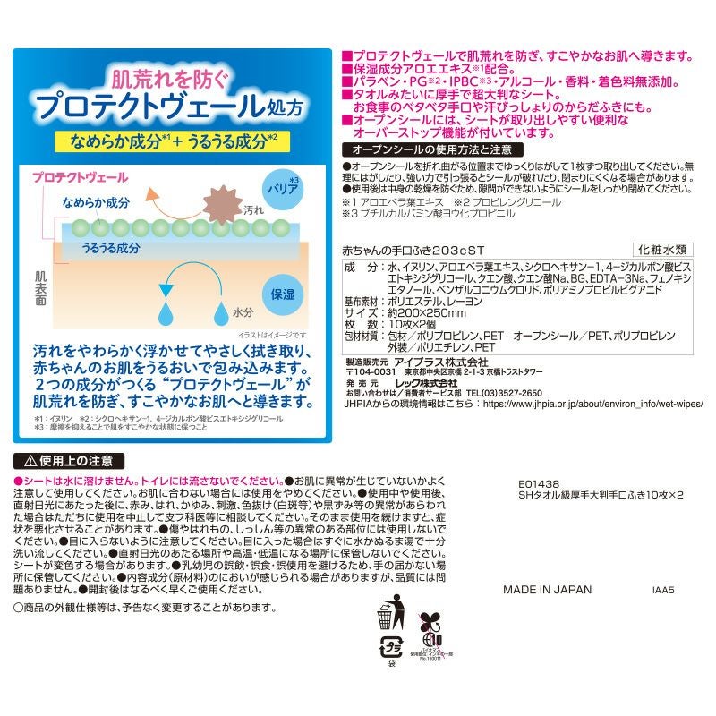 肌荒れを防ぐプロテクトヴェール処方 素肌すこやか宣言 タオル級 厚手大判手口ふき 10枚×2個