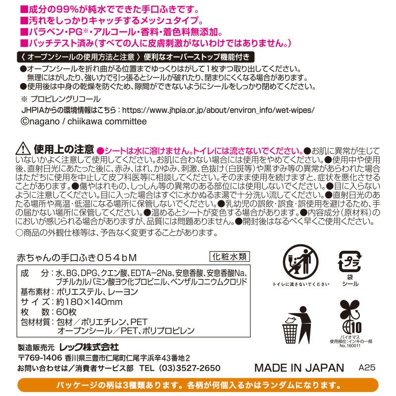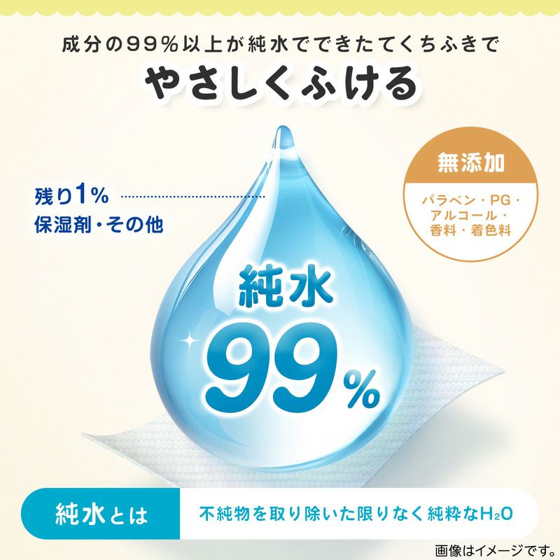●成分の99%が純水でできた手口ふきです。