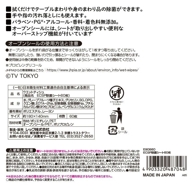 ●ノンアルコールタイプの除菌ウエットシートです。●拭くだけでテーブルまわりや、身のまわり品の除菌ができます。●手や指の汚れ落としにも使えます。●パラベン、PG、アルコール、香料、着色料 無添加です。●大容量20個入り:60枚×20個=1200枚●webでしか手に入らない、限定アイテムです。●除菌性能試験済み(本品はふきとった後の菌を減少させるもので、すべての菌を除去するものではありません。) ※配送の都合上、外箱に若干の汚れや傷が生じたり、送り状がパッケージの絵柄部分に貼付される可能性がございます。 恐れ入りますが、あらかじめご了承くださいませ。