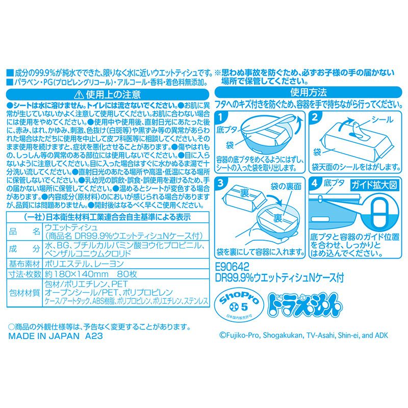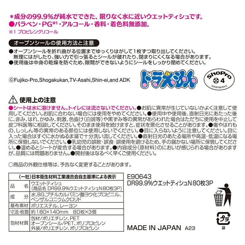 他の画像を見る ちょっとした机まわりのおそうじや手口拭きとして。成分の99.9%が純水の安心処方です。 ドラえもん 水99.9% ウェットティッシュ 80枚 3個入 ¥ 658 税込 お気に入りに登録する