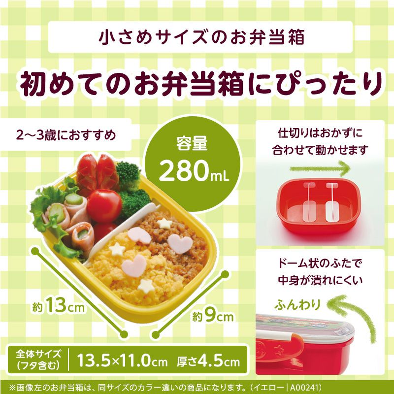 他の画像を見る イエローとレッドの2種類から選べます。ふたが開けやすいエア調整弁付き アンパンマン 抗菌 ロック式 おべんとう箱 280mL イエロー or レッド ¥ 1,331 税込 お気に入りに登録する
