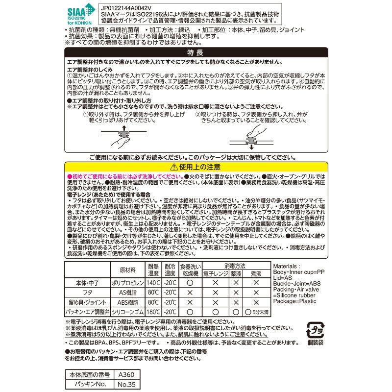 他の画像を見る イエローとレッドの2種類から選べます。ふたが開けやすいエア調整弁付き アンパンマン 抗菌 ロック式 おべんとう箱 360mL イエロー or レッド ¥ 1,573 税込 お気に入りに登録する