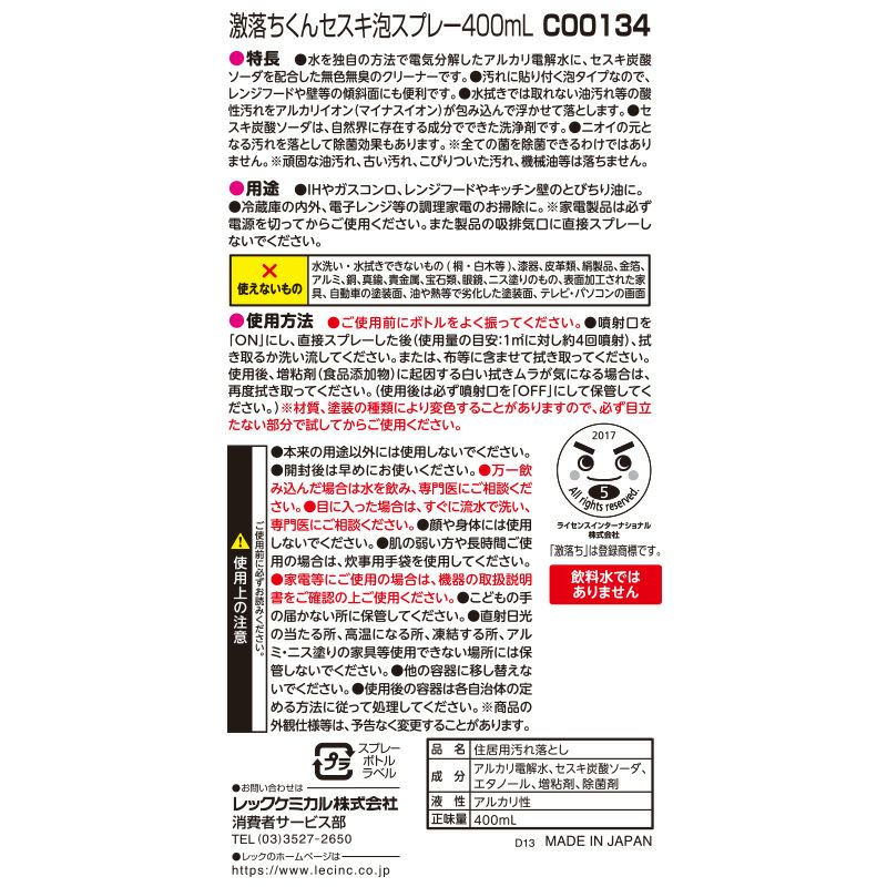 ●汚れに貼り付く泡タイプなので、レンジフードや壁等の傾斜面にも便利です。