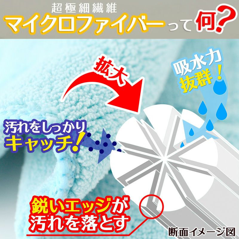 ●超極細繊維(マイクロファイバー)が油汚れやホコリなどをスッキリ落とし、水滴をすばやく拭き取ります。