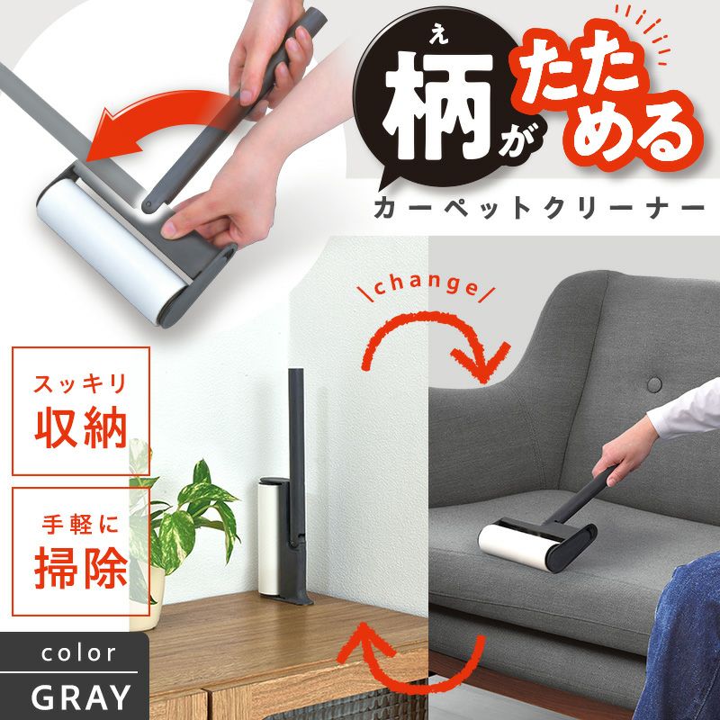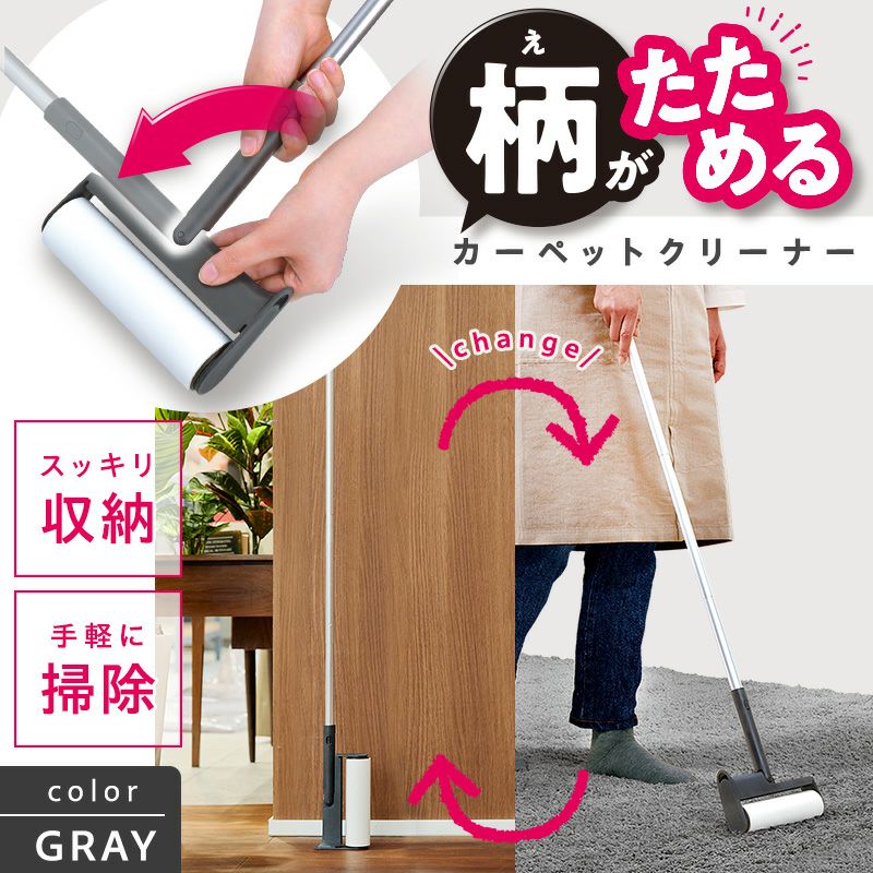 すっきりと自立収納できる! 激落ちくん 柄がたためる カーペットクリーナー ロング柄 ホワイト
