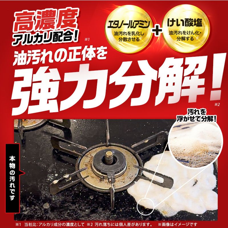 ●2種類のアルカリパワーで油汚れを強力分解します。