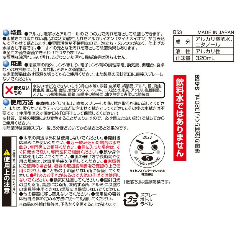 ●アルカリ電解水とアルコールの2つの力で汚れを落として除菌もできます。