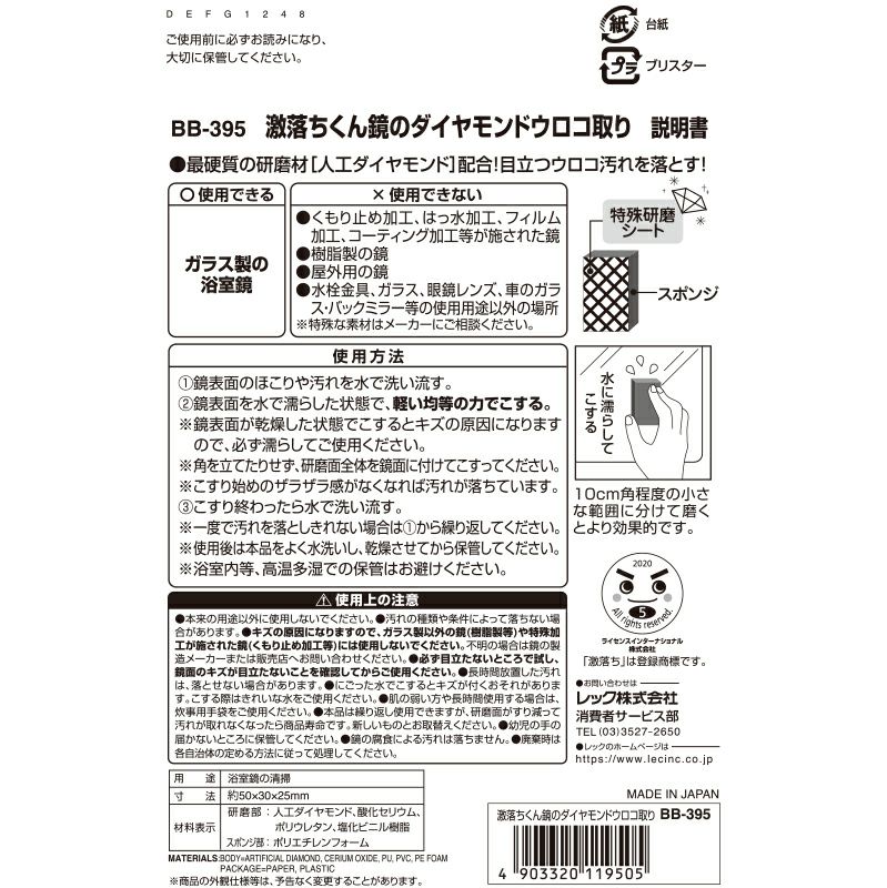 ●硬度10のダイヤモンドの力で、頑固な鏡のウロコ汚れを落とします。