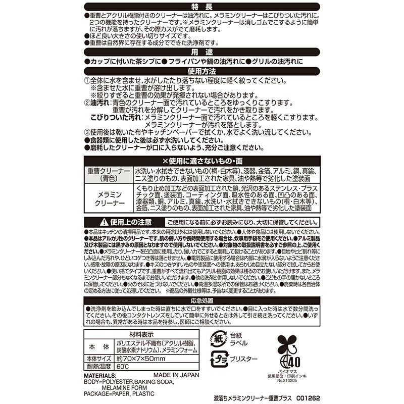 ●汚れを分解する重曹クリーナー&こびりついた汚れを落とすメラミンクリーナーのダブル機能。