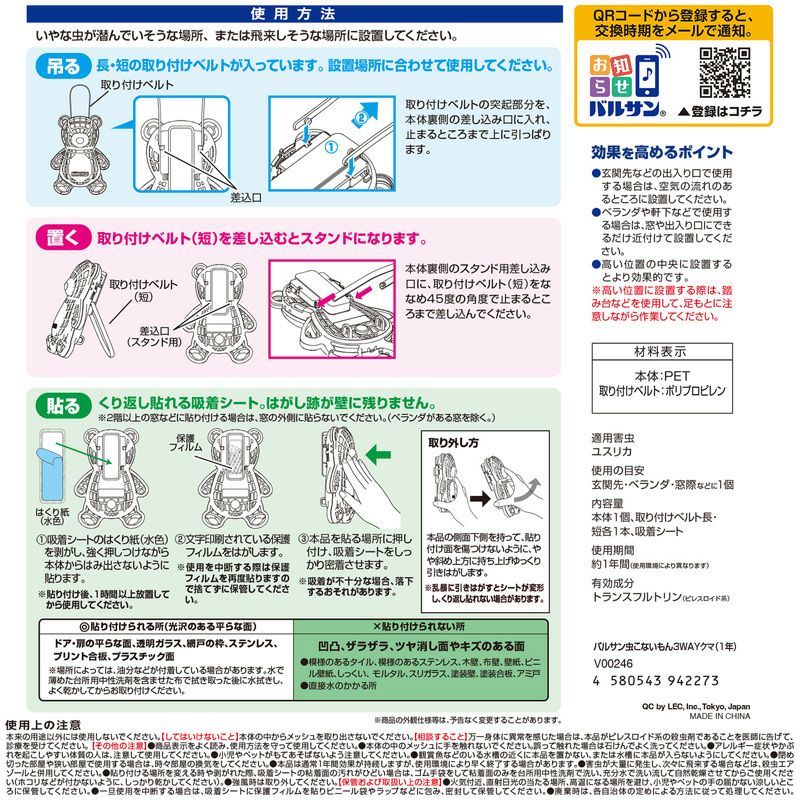 ●虫よけ効果は約1年間!(使用環境により異なります)