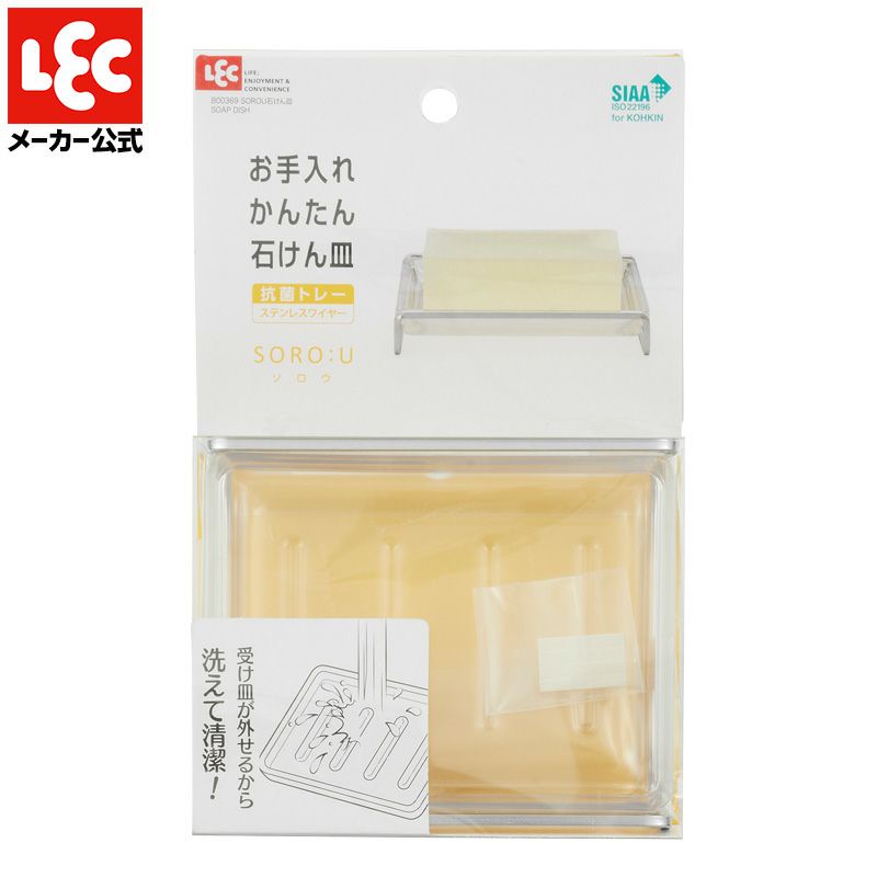 ステンレスワイヤーと透明トレーで清潔感のあるデザイン。シンプルだからお手入れもしやすい。デザイン性と利便性を兼ね備えた石けん皿です。