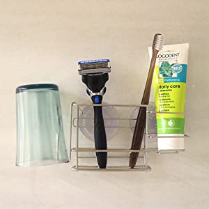 浴室で髭そりをする方はシェーバー、シェービングフォームとごちゃつきがちな小物類をまとめてスッキリ保管できます。