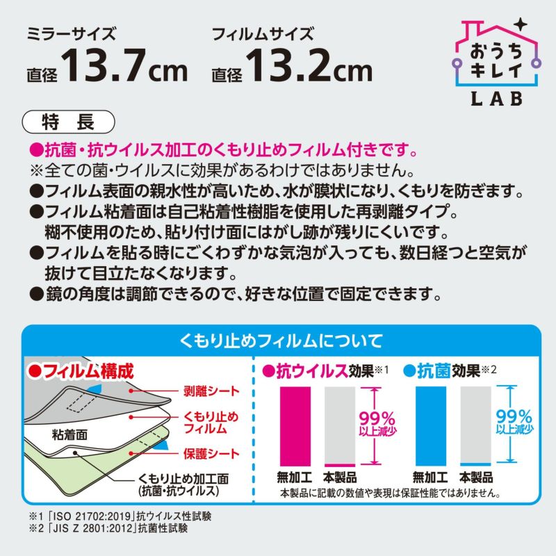 ●抗菌・抗ウイルス加工のくもり止めフィルム付きです。※全ての菌・ウイルスに効果があるわけではありません。