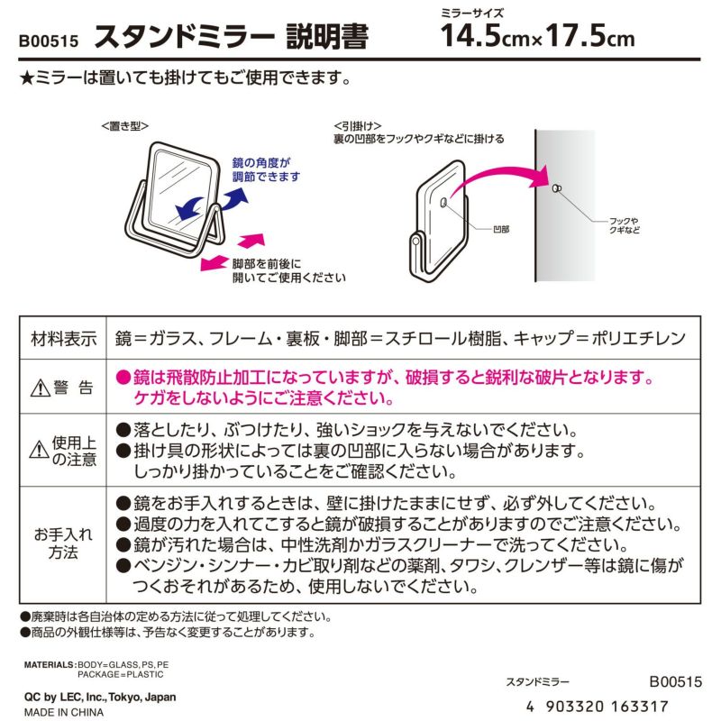 ●鏡のサイズは14.5×17.5cm。脚部は畳めるのでスリムに収納できます。
