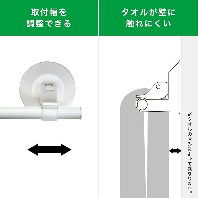 強力吸盤でがっちり固定できるレバー式タイプです。 レバー式吸盤タイプ タオル掛け 最大干し幅64.5cm(全長72.5cm) ホワイト or グレー