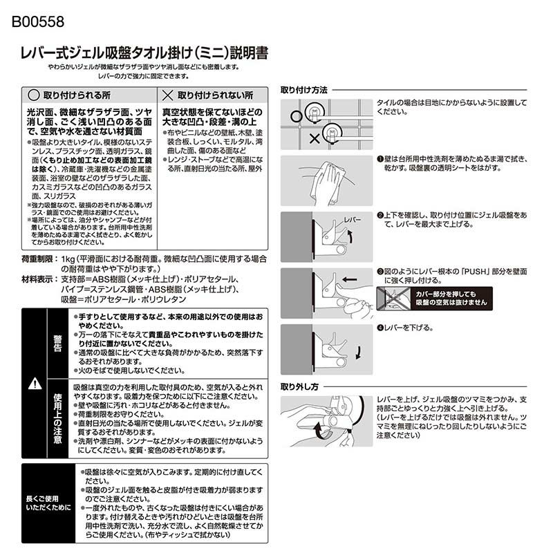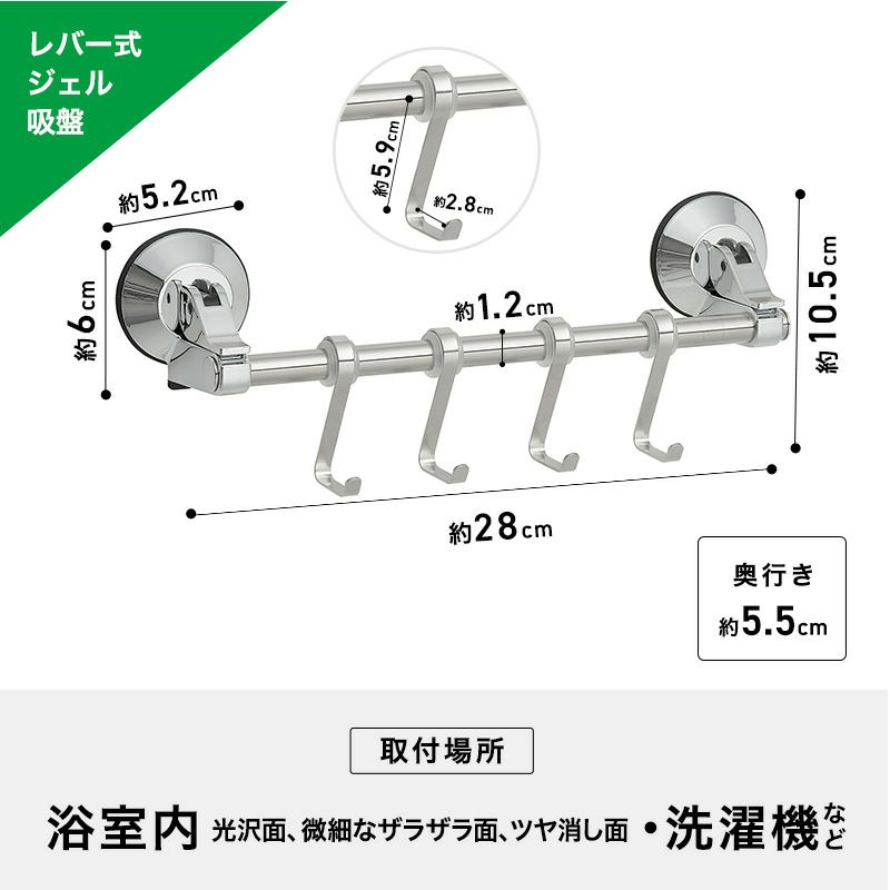※強力吸盤なので、破損のおそれのある薄いガラス・鏡面でのご使用はおさけください。