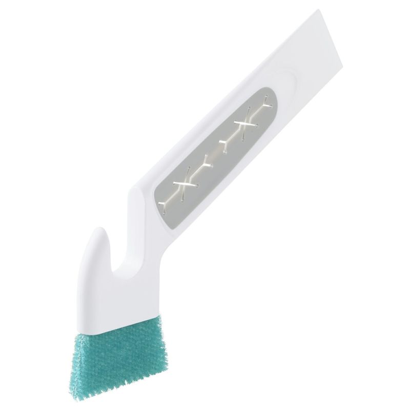 ●水だけで汚れをブラッシングできるブラシ・角に溜まった汚れやこびりついた汚れに使えるヘラ・ウェットシートを取り付けて浴室換気口を掃除する3WAY機能