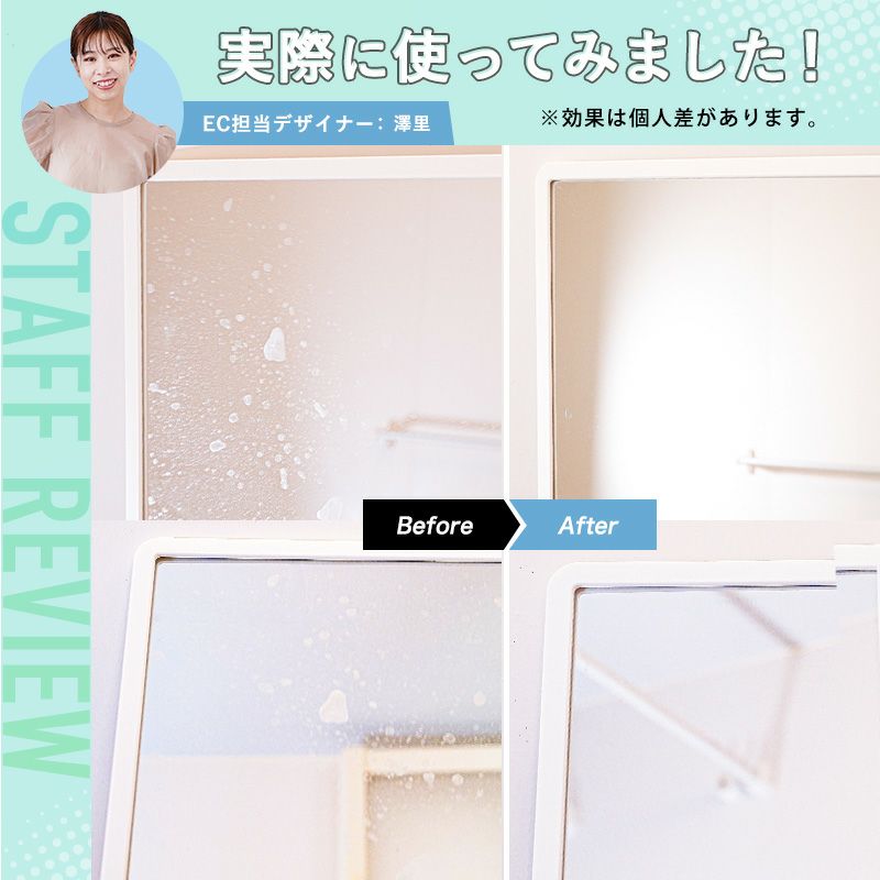 期待以上に曇りが取れて浴室の鏡がピカピカになり、とても見やすくなりました