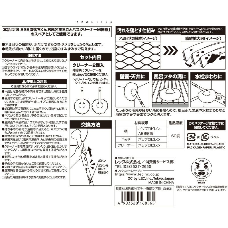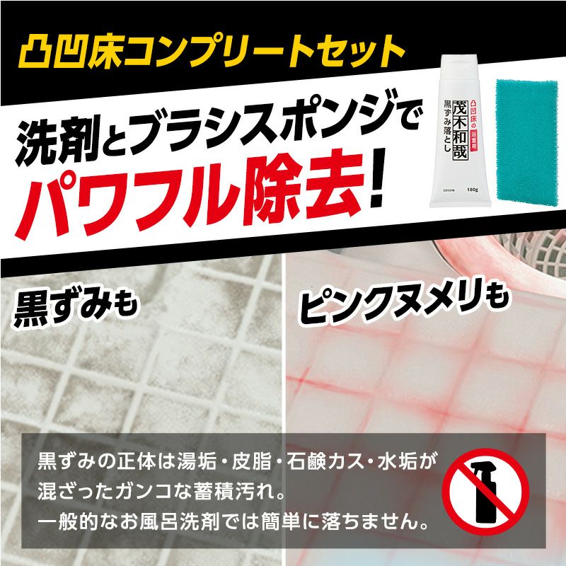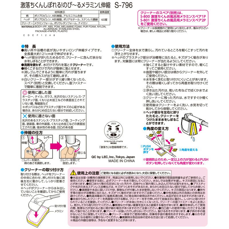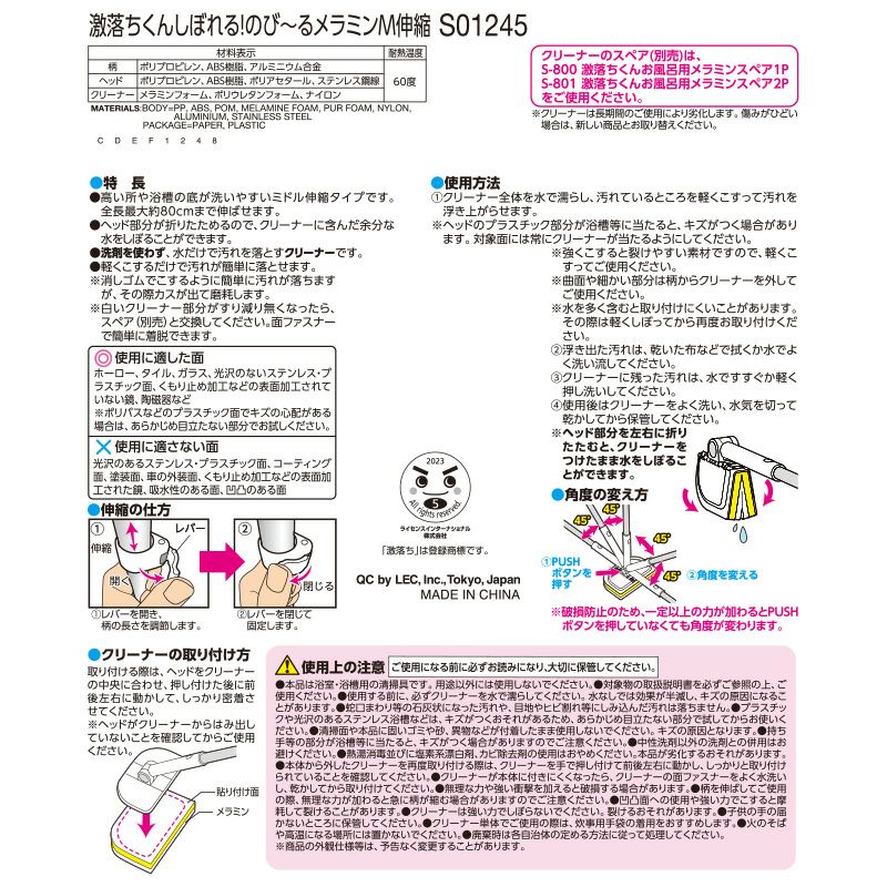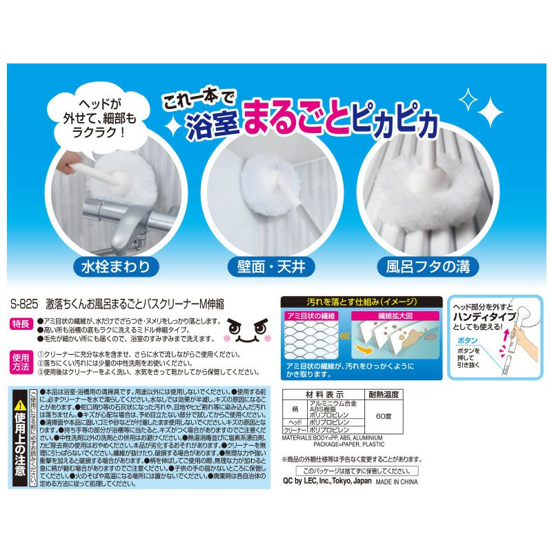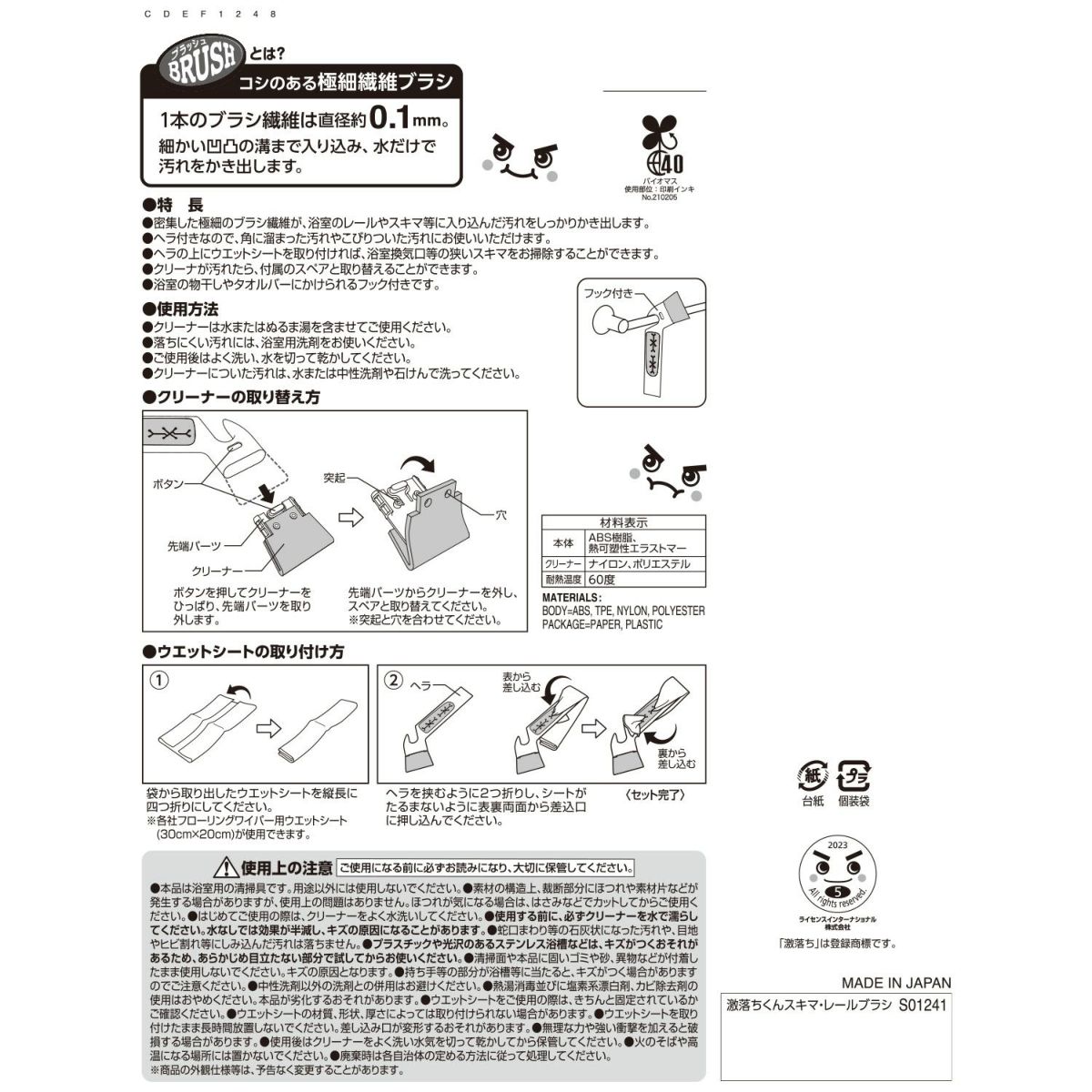 - 凸凹床の溝に最適なブラシ「床用 ハンディブラシ」や、立ったままお掃除できる伸縮タイプの「激落ち しぼれる のび~る お風呂用メラミン」、皮脂汚れやぬめり取りに最適なスポンジ「激落ち バスクリーナー」など、他にもお客様のバスルーム環境のお悩みを解決するそうじ用品をご用意しております。