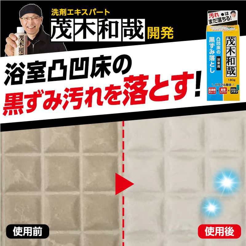 - レックでは、簡単に汚れを落とす時短お掃除の【激落ちくん】と、プロ仕様の強力洗剤【茂木和哉】を販売しております。