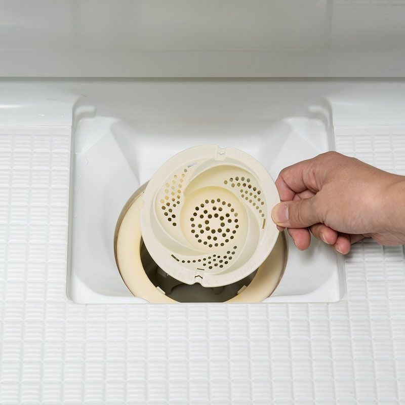 ●髪の毛まとめてポイッと捨てることができる便利な排水口カバーです。