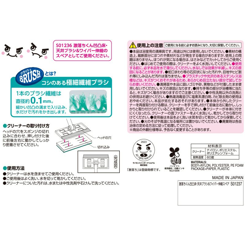 ●「レック 激落ちくん 凹凸床 ・ 天井 ブラシ & ワイパー (伸縮タイプ) スキージー付」専用(4903320164666)のスペアです。