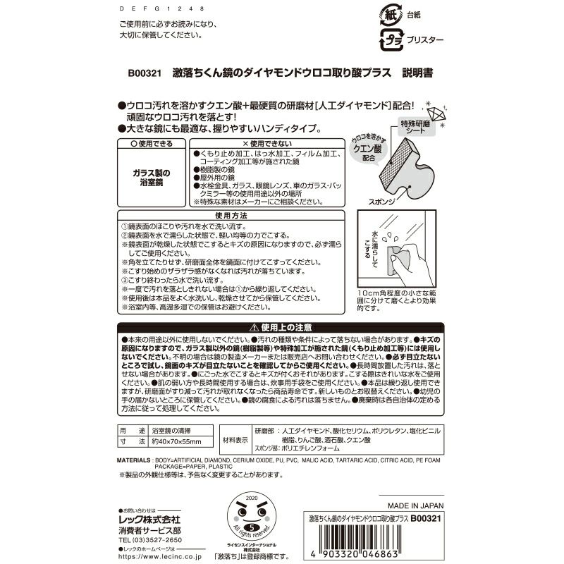 ●ダイヤモンド研磨粒子に「酸」を配合!「溶かして落とす」激落ちくんのウロコ汚れ落としです。