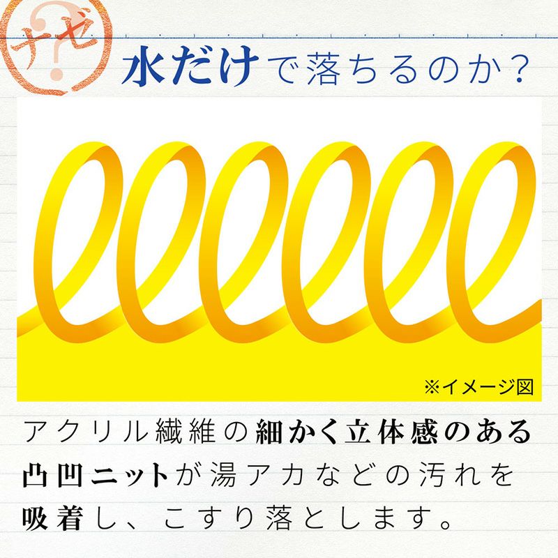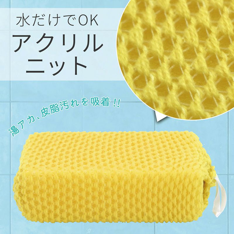 ●アクリル繊維の細かい溝がバスタブ等に付着した油分の多い湯アカを吸着し、キズをつけずに水だけでも汚れを落とします。 ●立体感のある凸凹ニットが効果的に汚れに密着してこすり落とします。 ●収納に便利な吊り下げ紐付きです。