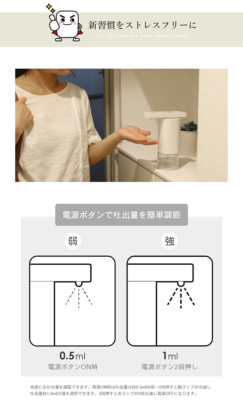 センサー感知型で手を触れずに利用できます。 激落ちくん 洗面所用 消毒剤 ディスペンサー