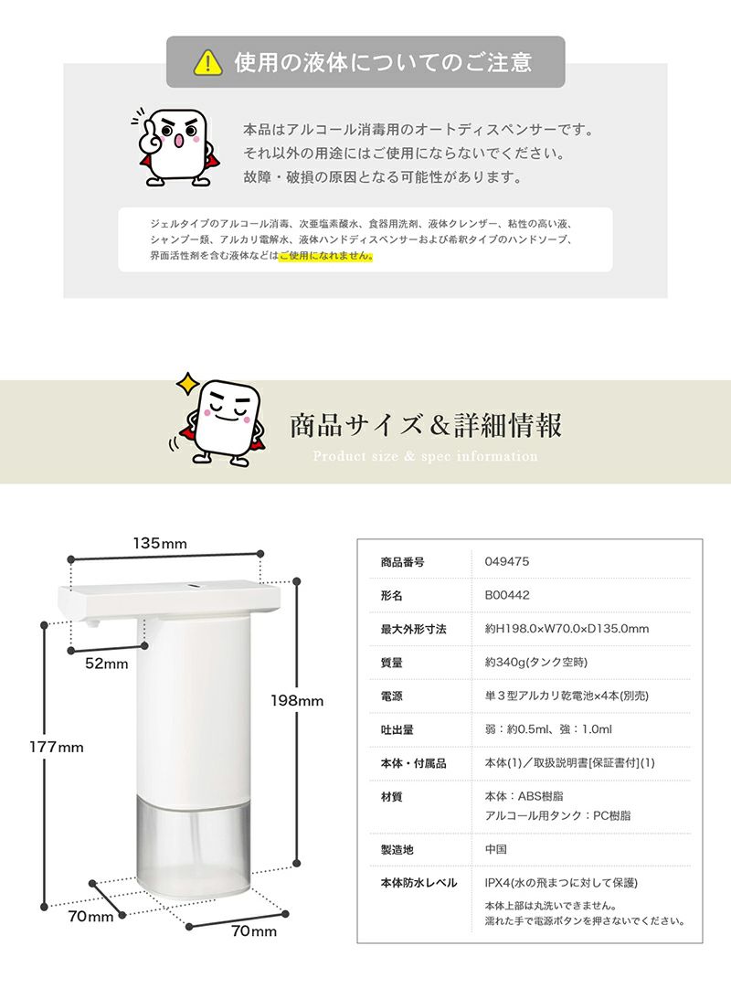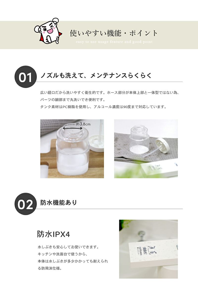 材質本体:ABS樹脂、アルコール用タンク:PC樹脂