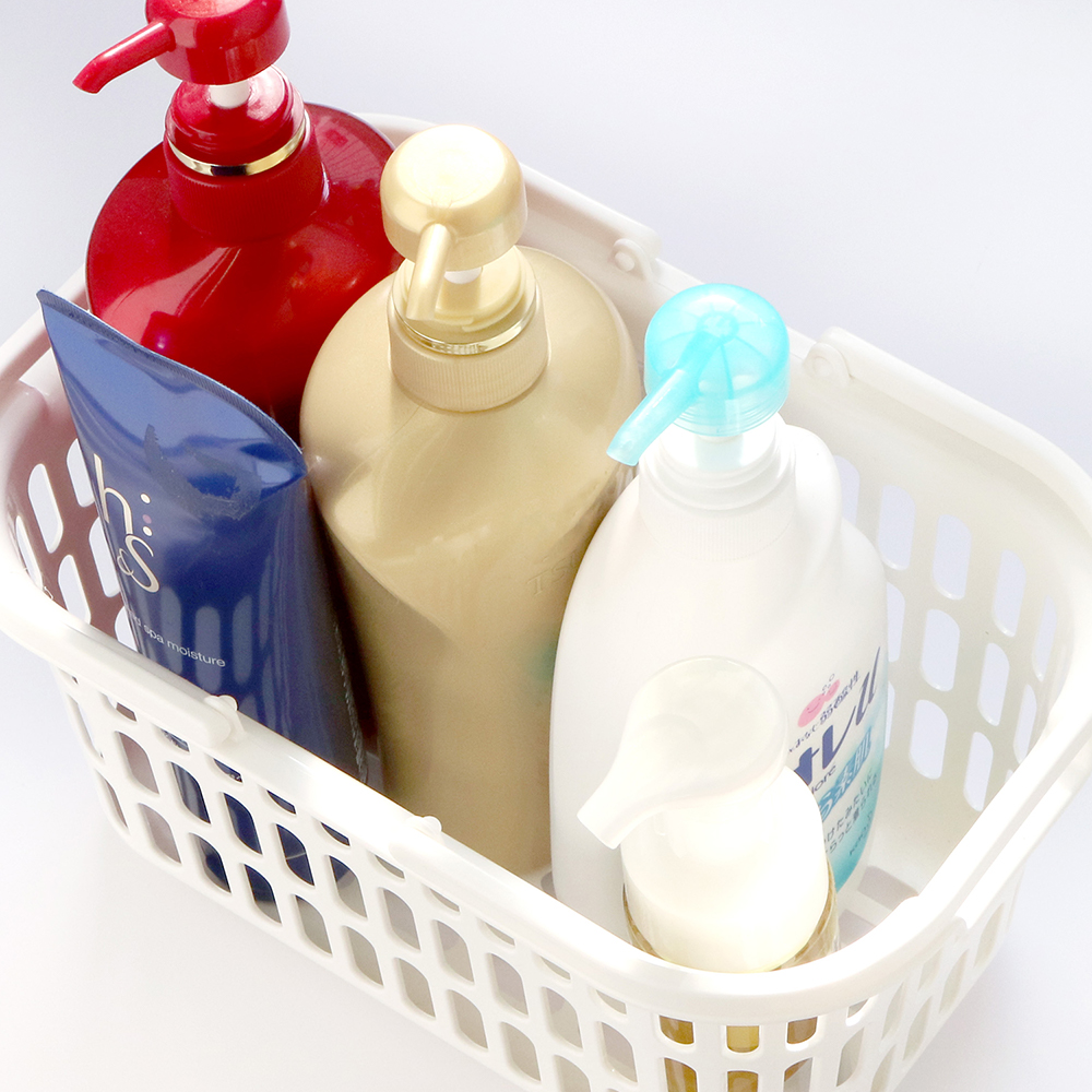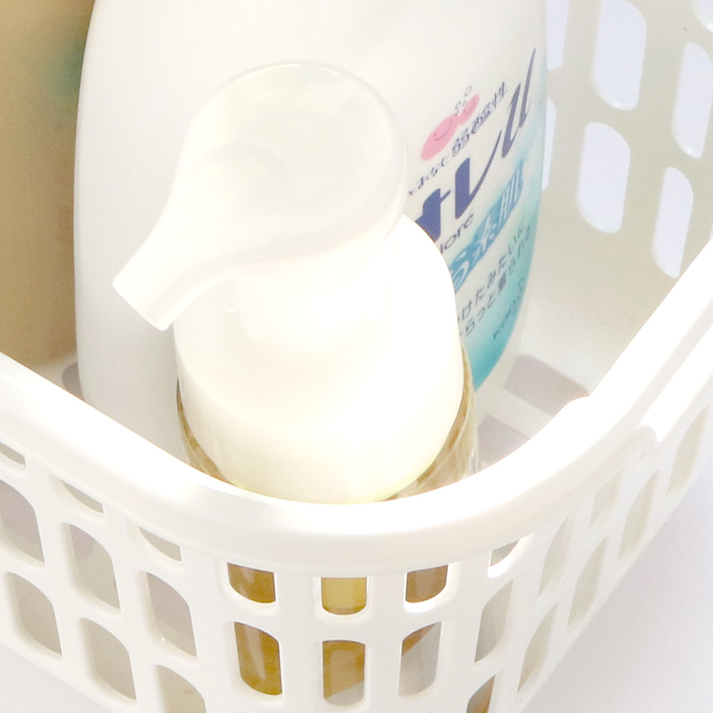 軽量かつ強度の高いプラスチック素材であるポリプロピレン100%のバスケットだから、ボトルをいっぱいに入れても安心。金属を使っていないので水回りで使用してもサビの心配がありません。