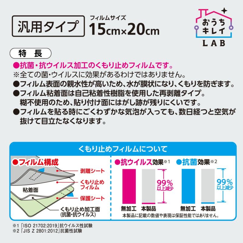 ●抗菌・抗ウイルス加工のくもり止めフィルムです。※全ての菌・ウイルスに効果があるわけではありません。