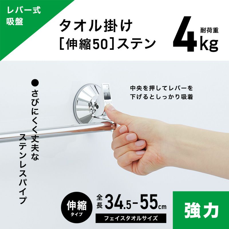 他の画像を見る 送料無料 強力吸盤でがっちり固定できるレバー式タイプです。 レバー式吸盤タイプ タオル掛け 伸縮タイプ 最大干し幅47cm(全長34.5~55cm) 通常価格 ¥ 1,628 のところ ¥ 1,547 税込 お気に入りに登録する