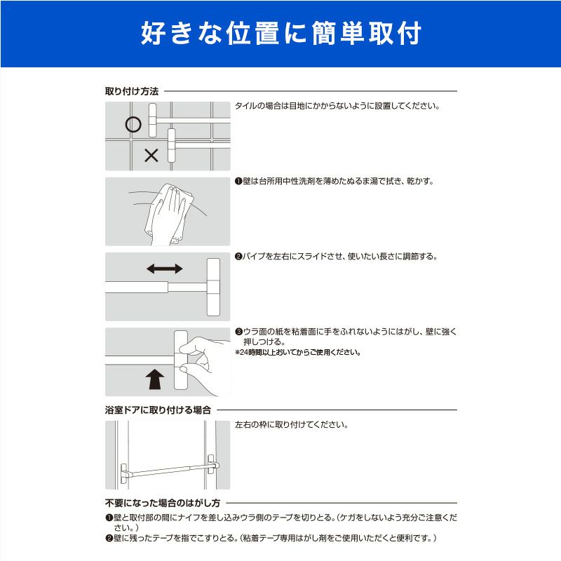 他の画像を見る 送料無料 水に強い超強力接着、さびにくく丈夫なステンレスパイプです。 シリコンボンド タオル掛け 伸縮タイプ ステンレスパイプ 最大干し幅76.5cm(全長49~84.5cm) 通常価格 ¥ 1,848 のところ ¥ 1,756 税込 お気に入りに登録する
