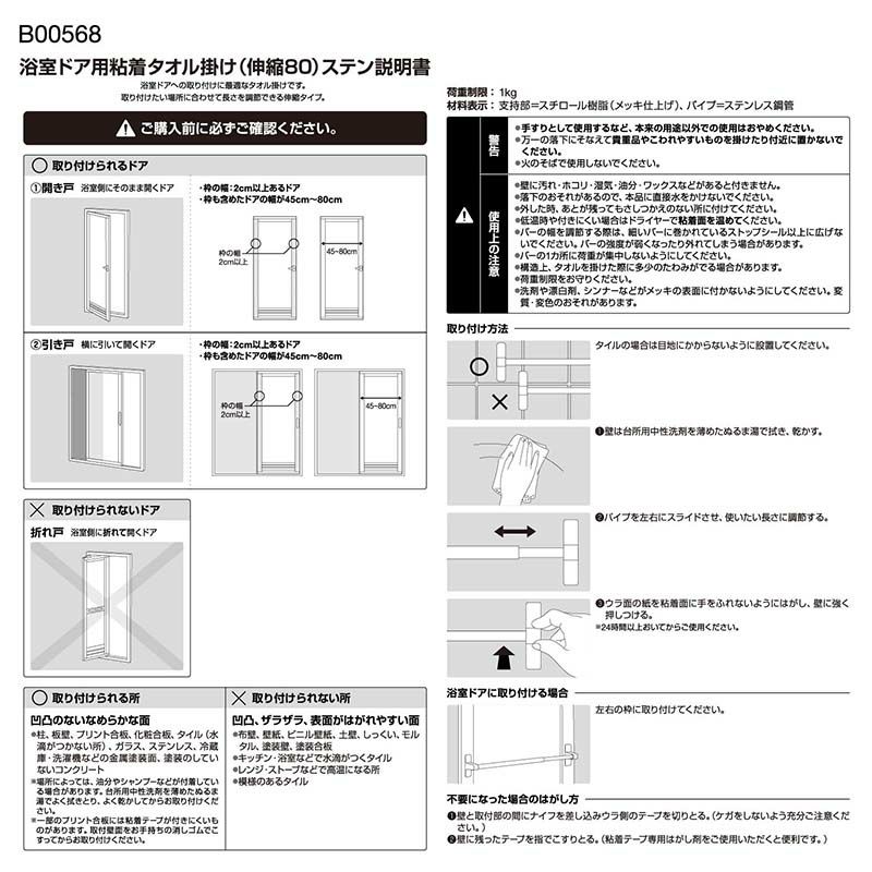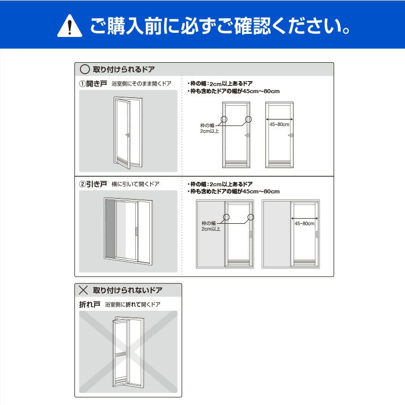 ※場所によっては、油分やシャンプーなどが付着している場合があります。台所用中性洗剤を薄めたぬるま湯でよく拭き取り、よく乾かしてからお取り付けください。