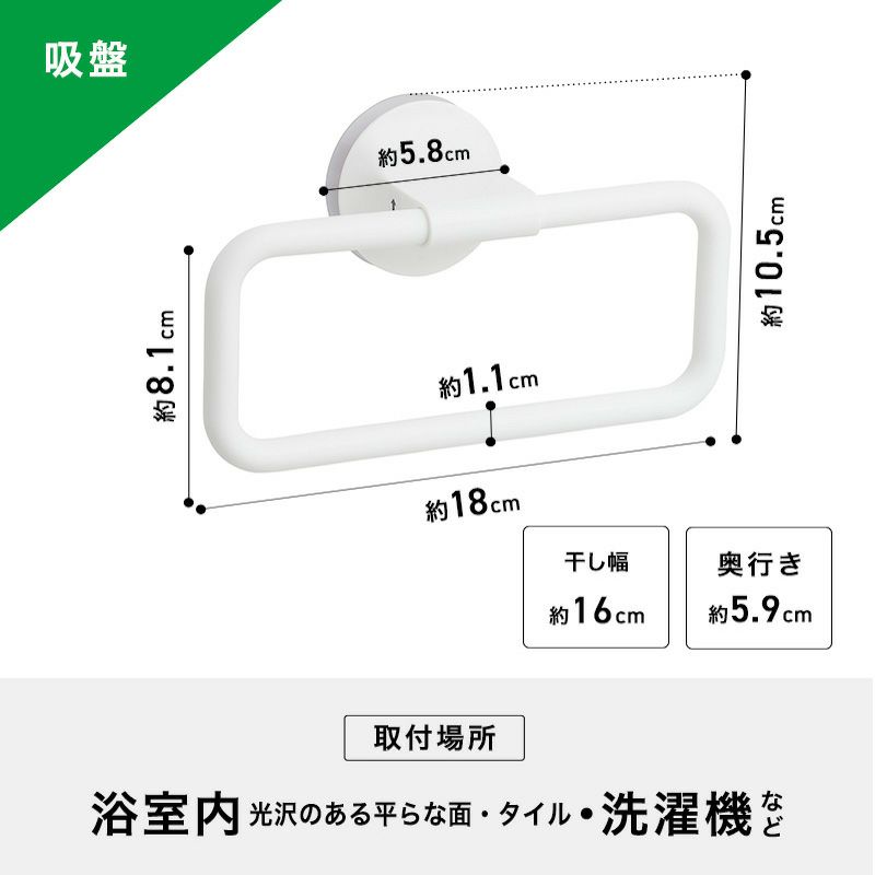 吸盤より大きいタイル、模様のないステンレス、プラスチック面、透明ガラス、鏡面(くもり止め加工などの表面加工鏡は除く)、冷蔵庫・洗濯機などの金属塗装面