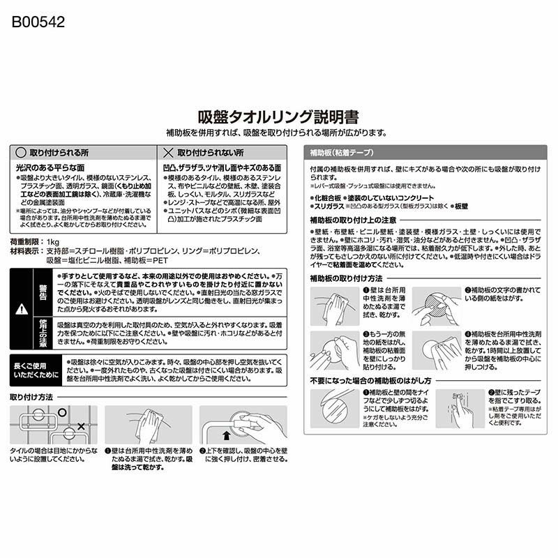 付属の補助板を併用すれば、壁にキズがある場合や次の所にも吸盤が取り付けられます。
