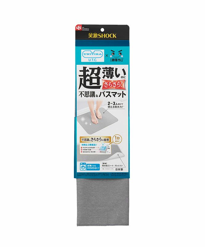 洗濯時・収納時にかさばらず、乾きが速い! 笑激SHOCK 超薄 さらさら バスマット Mサイズ グレー