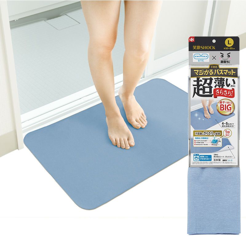 超薄いのに、しっかり吸水!さらさら! 笑激SHOCK マジかるバスマット Lサイズ ブルー