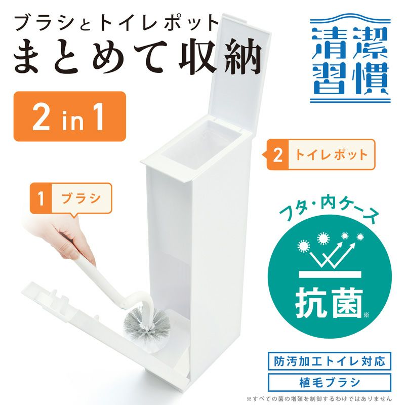 ●便器のフチに置いて衛生的に水切りができるケース付きのトイレブラシです。