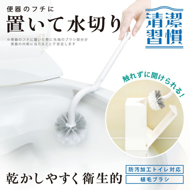 ●便器のフチに置いて衛生的に水切りができるトイレブラシです。
