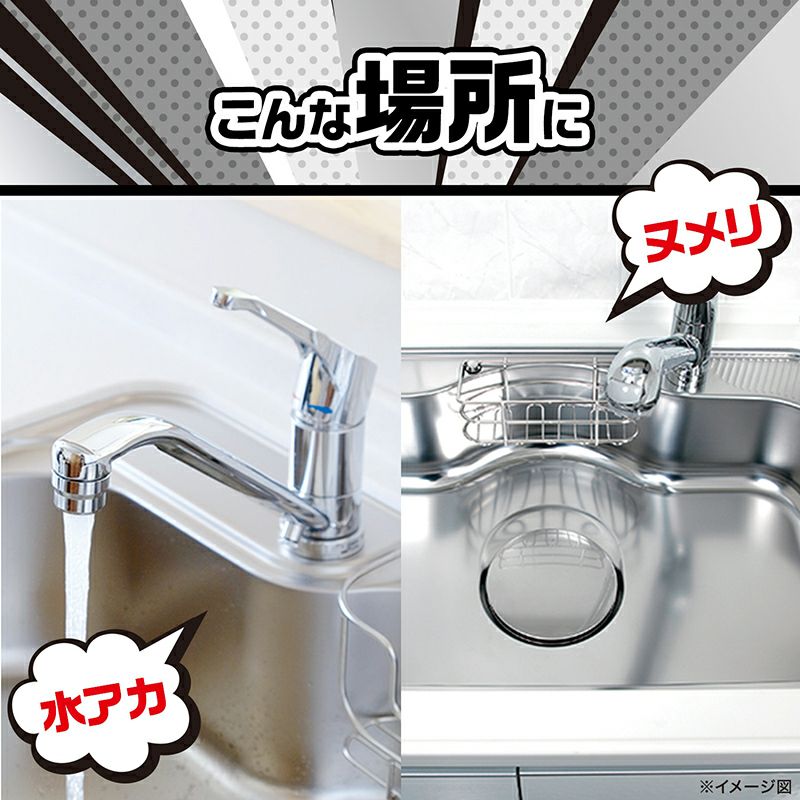 ●シンクまわりのべたついた汚れ・蛇口周りや水栓金具の水アカ・排水口のヌメリよごれに使えます。