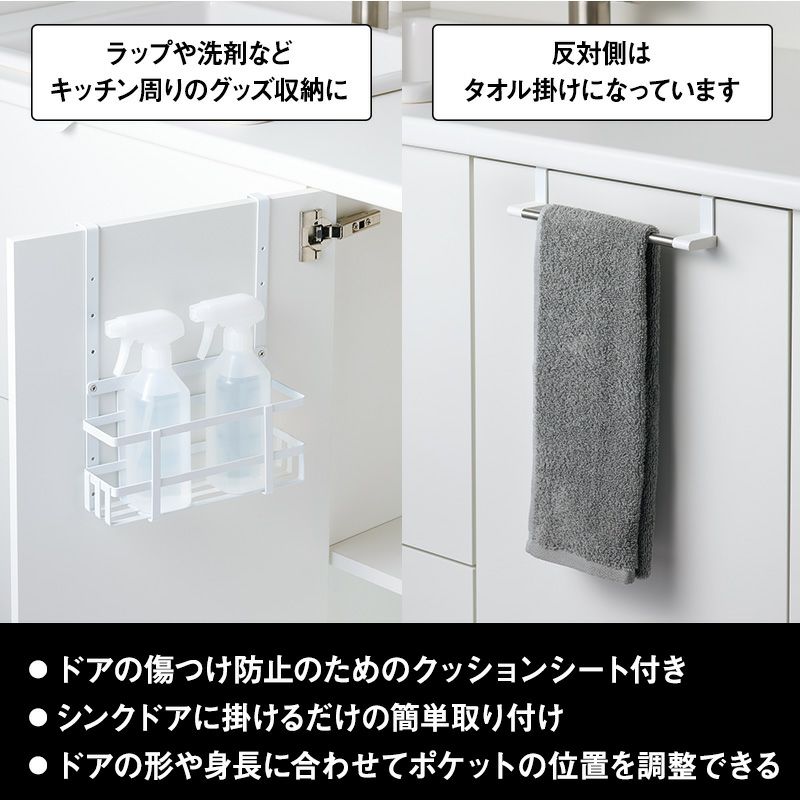 ●シンクドアに掛けるだけで簡単に取り付けられます。