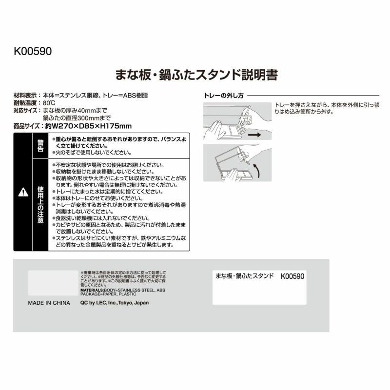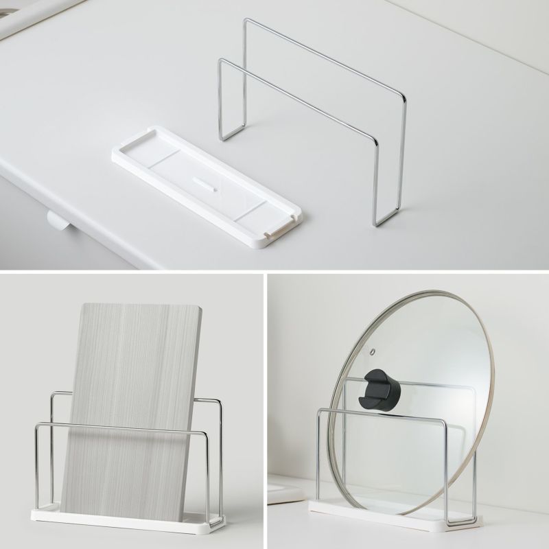 ●まな板や鍋ふたが立てられます。 ●トレーを外せるのでお手入れが簡単です。 ●耐熱温度80°