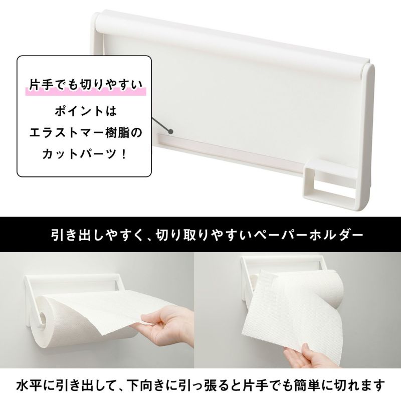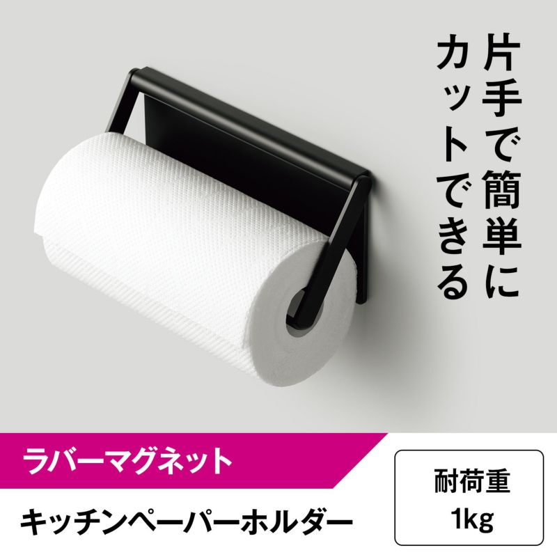 片手で簡単にカットできる キッチンペーパーホルダー ブラック (ラバーマグネット) 耐荷重1kg