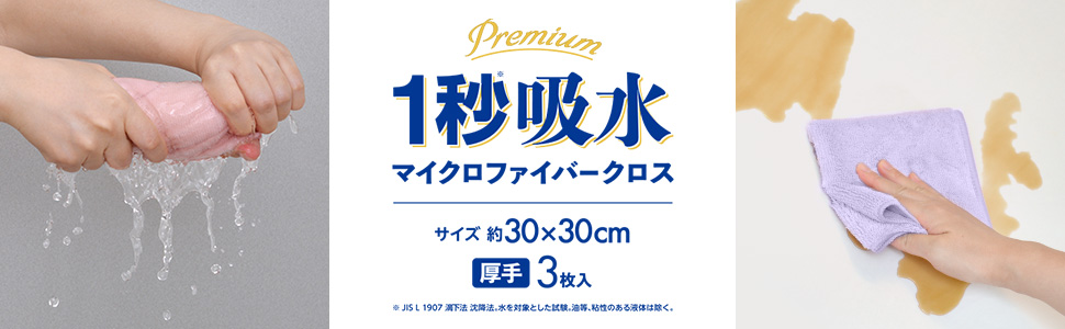 驚きの吸水力でこぼした水分も瞬時に拭き取れます。窓の結露、シンクの拭き上げ、お風呂場の水滴拭きにも最適。※ JIS L 1907 滴下法 沈降法。水を対象とした試験。油等、粘性のある液体は除く。