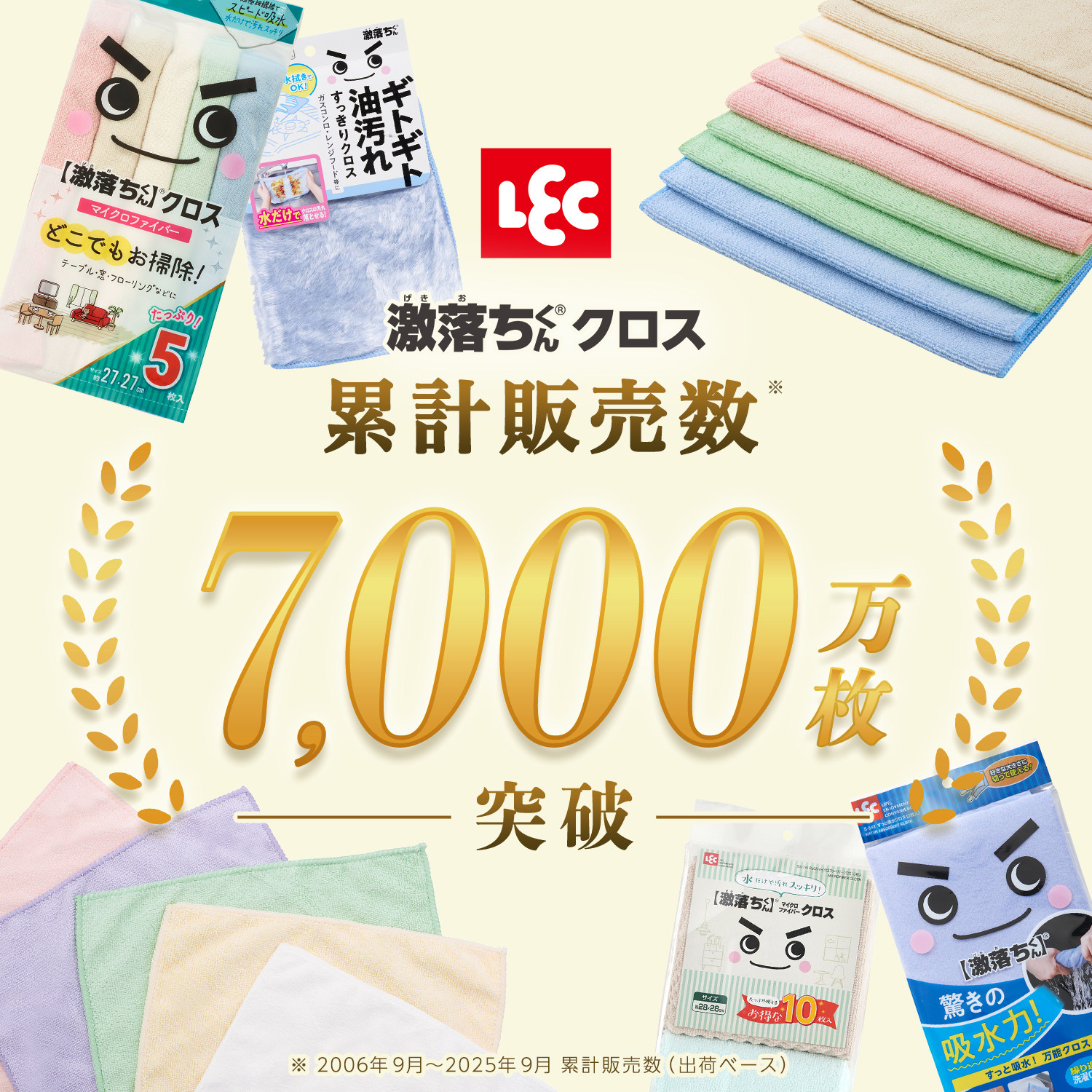 お掃除クロスといえばLECの激落ちシリーズ。拭くたびにキレイを届けてきた、日々の信頼の積み重ねがこの枚数につながっています。※2006年9月〜2025年9月 累計販売数(出荷ベース)