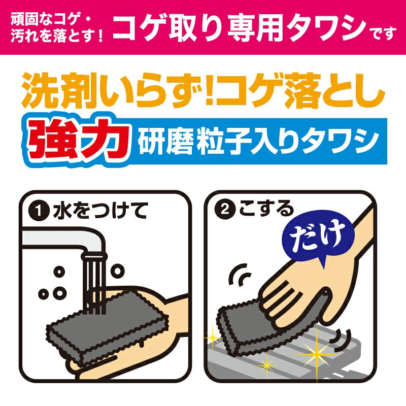 ●頑固なコゲ・汚れを洗剤なしで落とすコゲ取り専用たわしです。