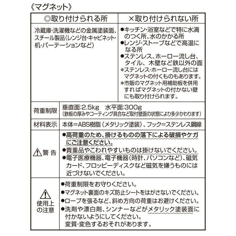 ※ステンレス・ホーロー流し台にはマグネットが付くものもあります。